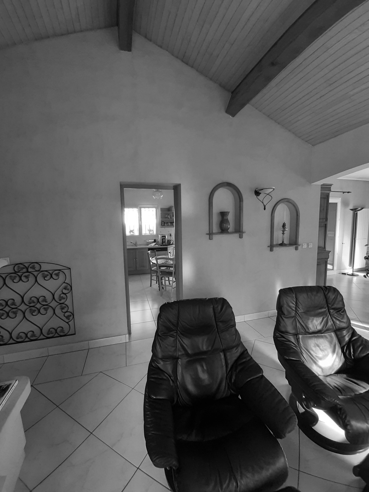 L’ouverture d’un mur porteur en arche sur le salon agrandit visuellement la pièce et crée une circulation fluide.