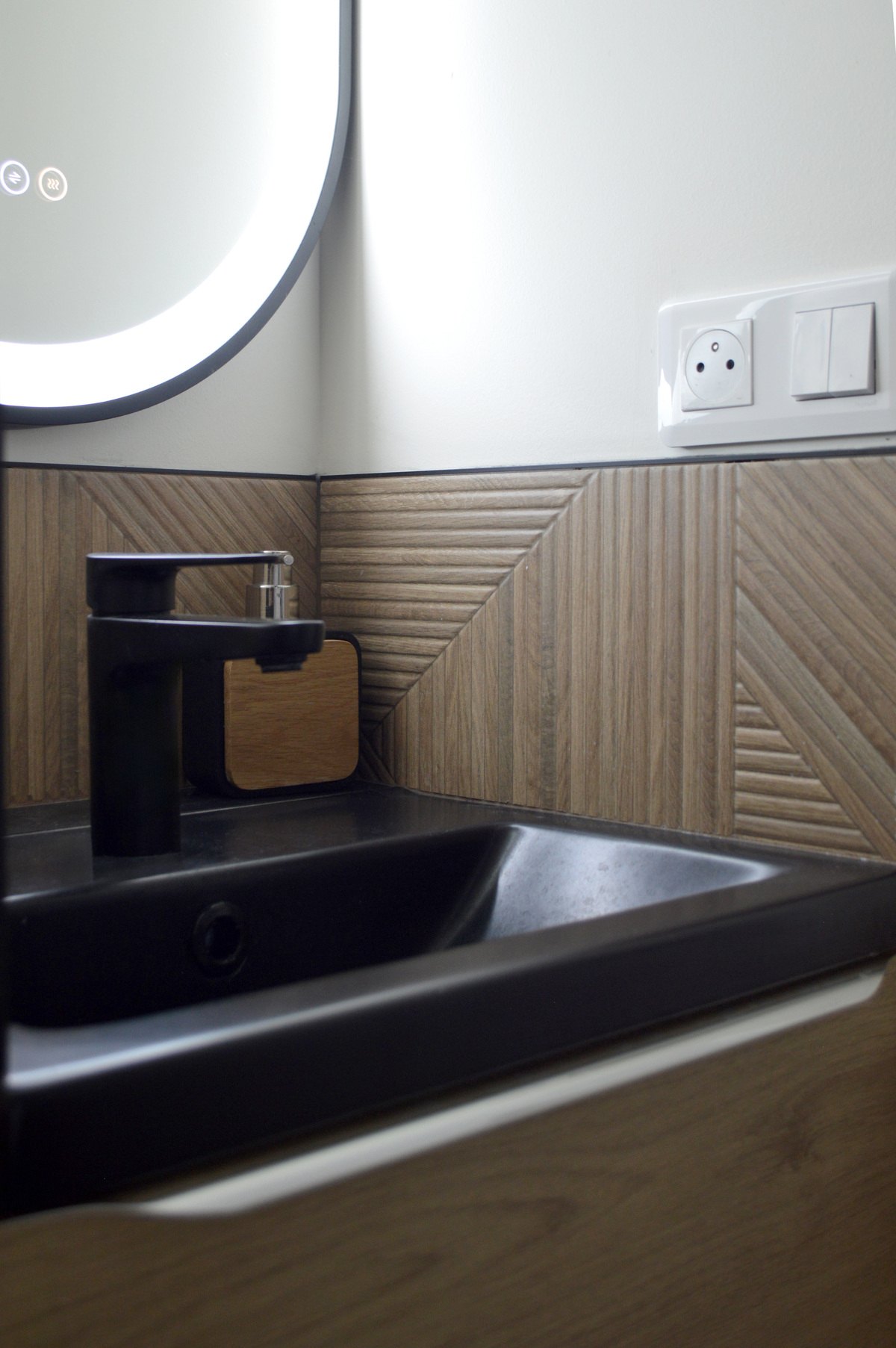 L’ancien espace WC a été intégralement repensé pour devenir une salle d’eau d’appoint contemporaine, à la fois optimisée et raffinée.